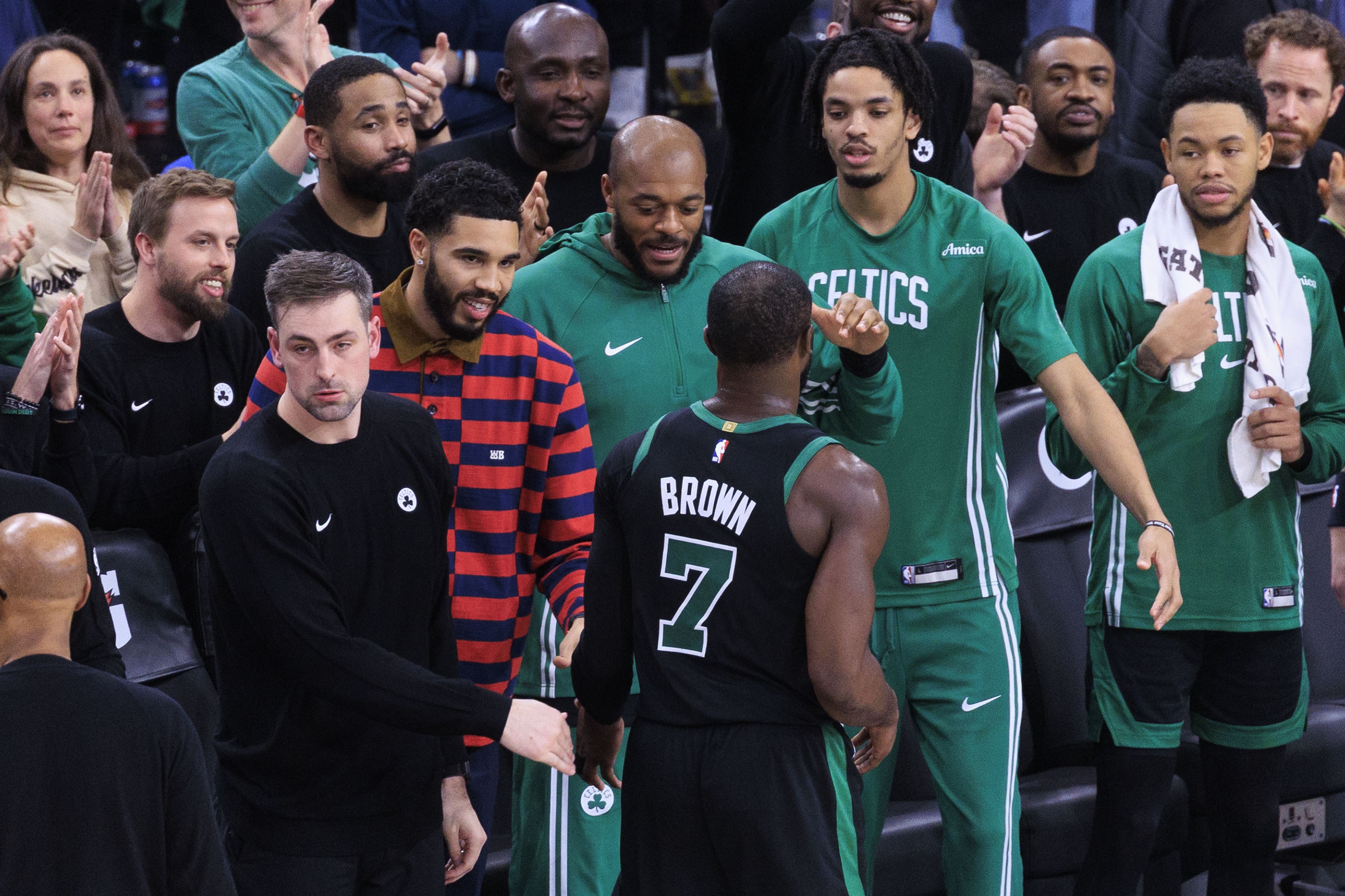 “我觉得塔图姆的恢复进展还算顺利,我一直都在关注着。我知道,就像职业生涯中遭遇困境的任何人一样,他的心理状态也经历了起伏。但我想告诉他的只有一句话:‘做对你自己最有利的事就好。’ 一定要记住这一点。因为伤病不只是身体上的阻碍,心理、精神、情绪等方方面面都会受到影响。所以,就算身体上感觉无碍,也要确保自己的心理、情绪和精神状态都足够好。”杰伦·布朗说道。